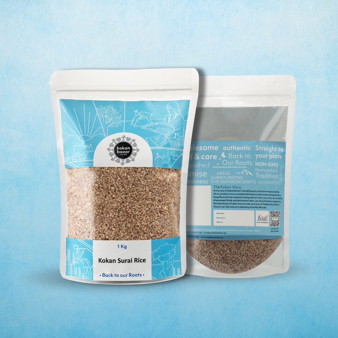 A Rice That Defines Everyday Konkan Meals, Surai rice is a familiar grain in many Konkan households. It cooks into soft grains with a subtle aroma that pairs beautifully with the bold flavors of coastal curries and dals. Because of its texture and taste, this rice is also widely used for preparing traditional batters for Amboli and dosa, making it a versatile grain for both meals and breakfast preparations. Grown in the fertile soils of the Konkan region, Surai rice reflects the agricultural traditions of coastal Maharashtra.