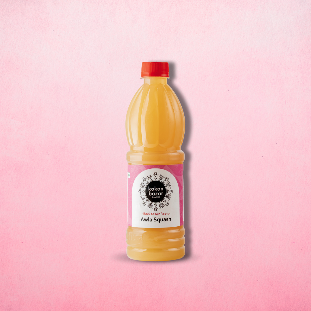 Kokan Bazar Awala (Indian Gooseberry) Squash is a natural immunity booster and shields against cold, asthma, stress and fatigue. This squash is made from pure Indian gooseberries naturally grown in fields free from chemical substances and pesticides. Kokan Bazar Awala Squash helps reduce cholesterol and blood pressure levels, improves digestion, promotes brain health, and maintains normal appetite by reducing hunger. It is a rich source of antioxidants, which help in preventing heart disease and cancer. It also helps reduce hair loss and premature greying of hair.