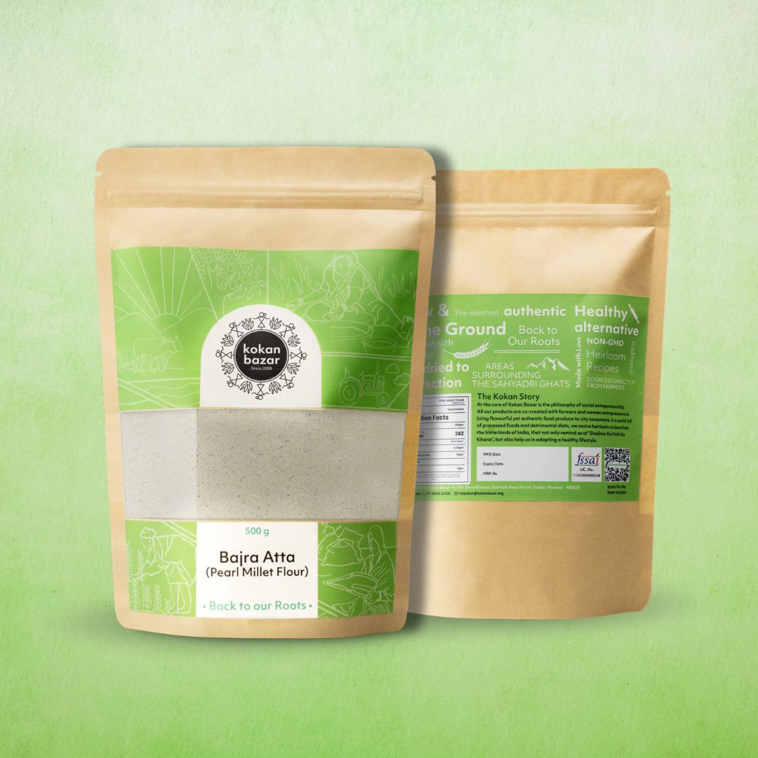 A Winter Staple with Deep Roots in Indian Kitchens, Bajra has long been valued in traditional diets for its strength giving properties. This Bajra Peeth is made using grains that are thoroughly washed and sun dried before being slowly stone ground. Stone grinding ensures the flour retains its natural oils and nutrients, giving it a fuller flavor and better texture when cooked.