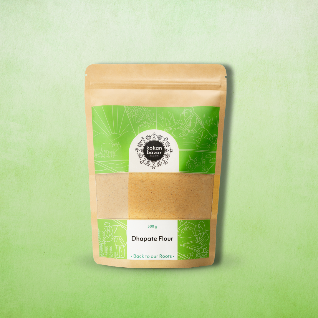 Kokan Bazar Dhapate Flour is the wholesome dish that is a staple in most Maharashtrian kitchens and is used as a breakfast and an evening snack. Kokan Bazar Dhapate Flour is an instant mix made from Superfood Jowar (Sorgum Flour), Besan (Bengal Gram Flour), Ajwain (Carrom Seeds), White Sesame, Jeera seeds (Cumin Seeds), Dhana (Coriander seeds), Red Chilli Powder, and Salt. This pancake is made by patting the dough (into a round shape) with the hand, and roasting on a Cast Iron Tawa with a little oil. It tastes best when hot, served with curds, pickle, or chutney.