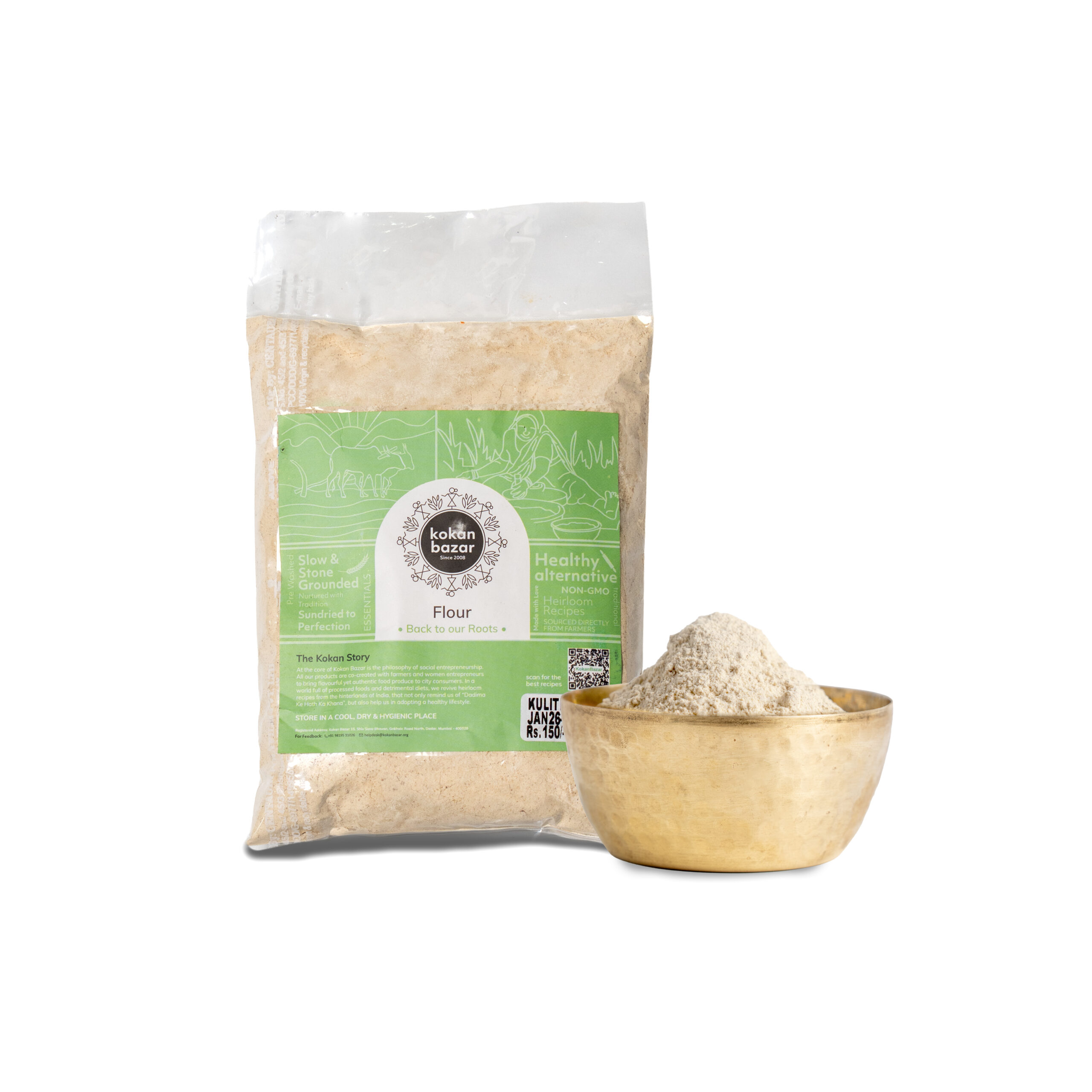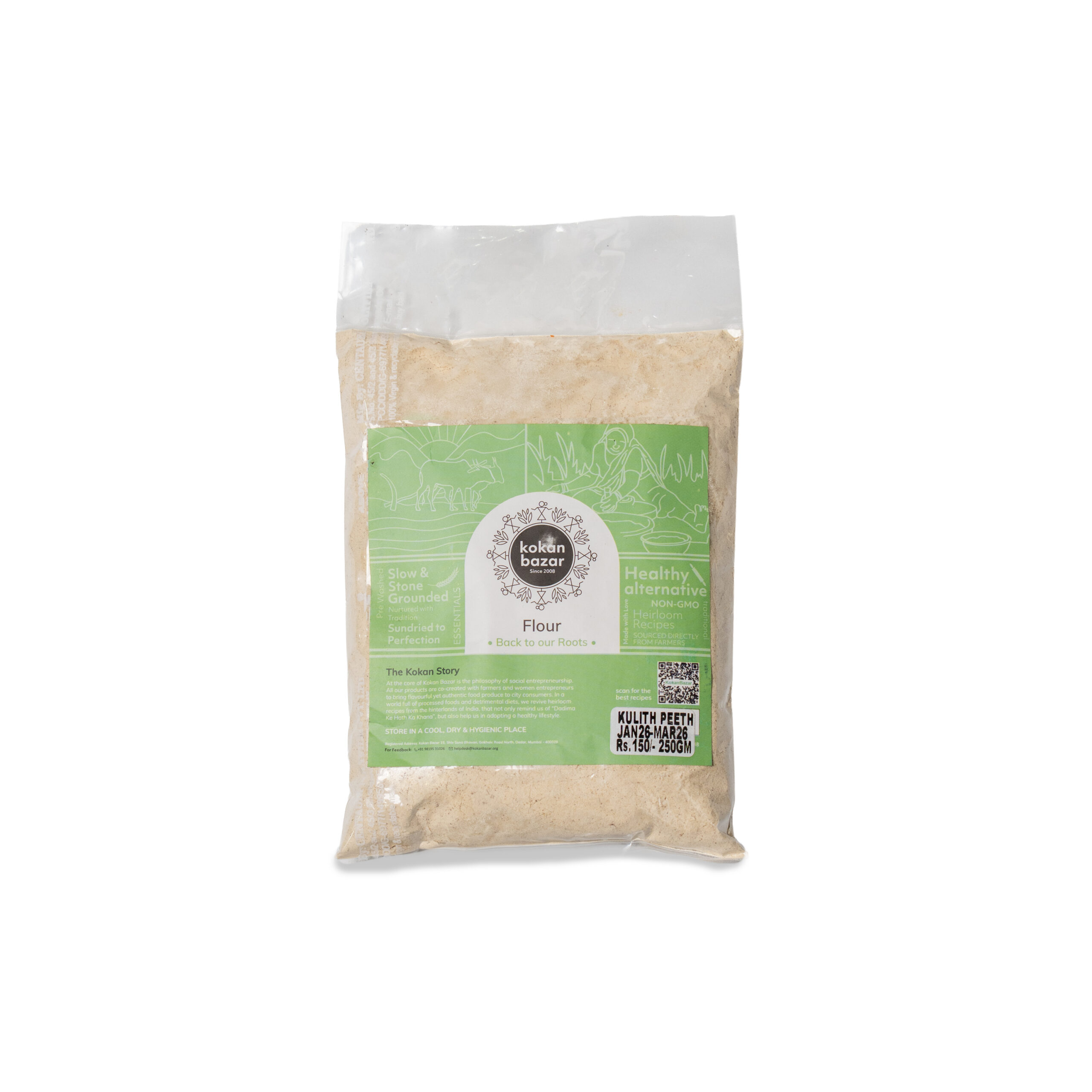 Discover Kulith Peeth , made from horse gram that is washed, roasted and stone ground to preserve its natural strength and nutrition. Known in traditional diets for its high protein content and warming properties, this flour is a powerful addition to your pantry for nourishing meals.