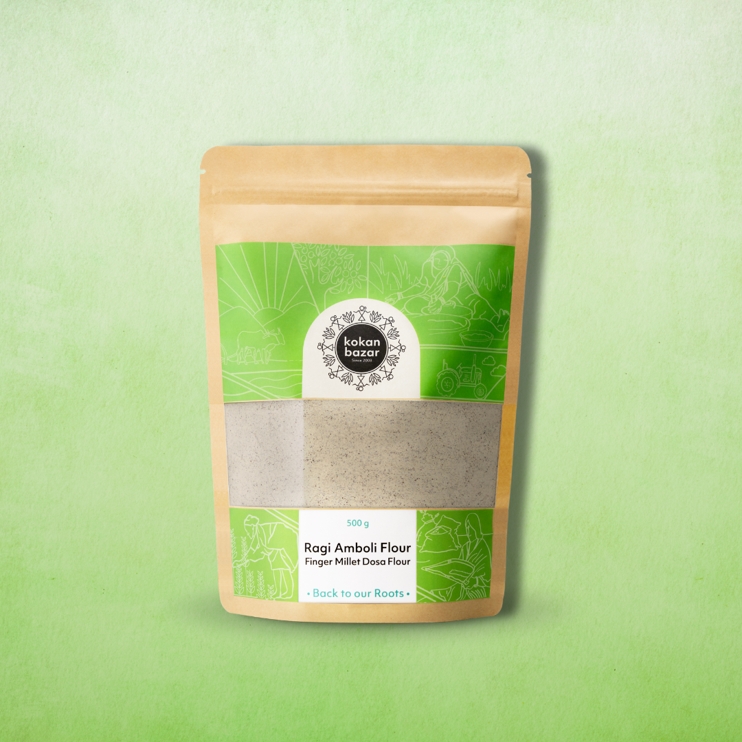 Discover Nachni Amboli Peeth, a traditional Konkan blend made using gavthi tandul, ragi, urad dal and chana dal in carefully balanced proportions. The ragi is collected from tribal communities across the slopes of the Sahyadri hills, where it grows naturally in the wild. Washed, sun dried and stone ground, this mix gives you soft, wholesome Amboli when naturally fermented.